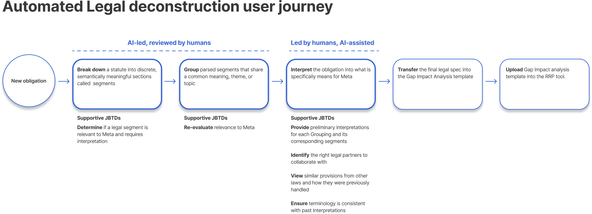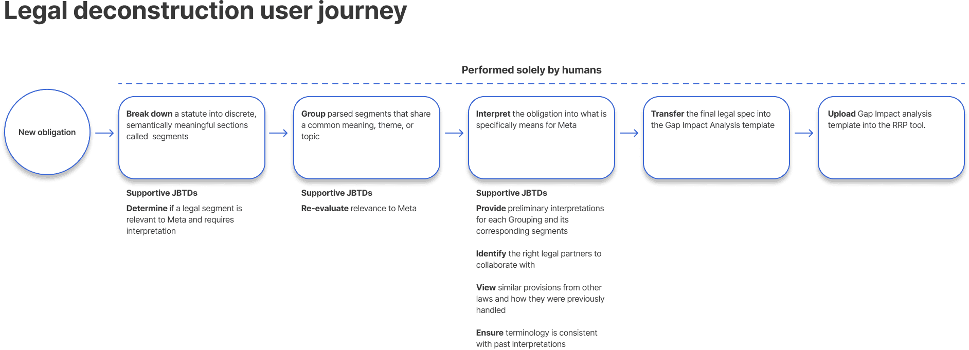 Legal deconstruction was manual, inconsistent, and handled outside the product ecosystem, making it difficult to scale as law volume and complexity increased.